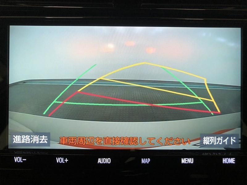 【バックガイドモニター】後方の映像をナビ画面に表示するだけでなく、ステアリング操作に連動して動くガイド線も同時に表示!予想進路の確認をしながら後退できるので便利です!