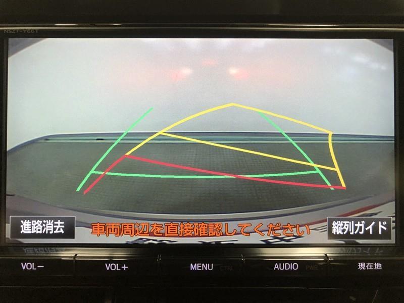 【バックガイドモニター】後方の映像をナビ画面に表示するだけでなく、ステアリング操作に連動して動くガイド線も同時に表示!予想進路の確認をしながら後退できるので便利です!
