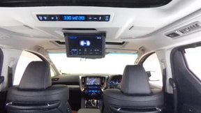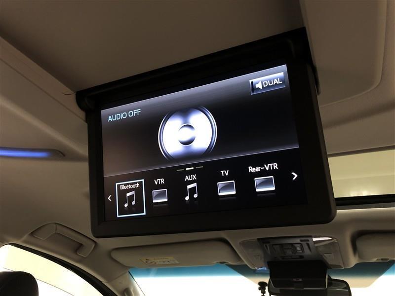 【12.1型リヤシートエンターテインメントシステム】後席独立機能により、前席と後席で別々の音声を聞くことが可能です。ディスプレイは電動開閉式なのでリモコン操作が可能!走行中でも安全に操作できます。