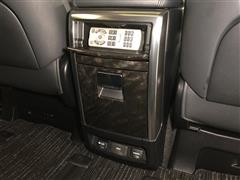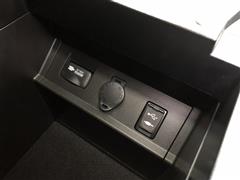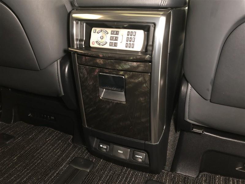 【コンソールリヤエンドボックス】上下2カ所に収納が付いています。後席モニター用リモコンを収納しておくのにピッタリ!最下部にはリヤエンターテインメントシステム用入力端子が設置されています。