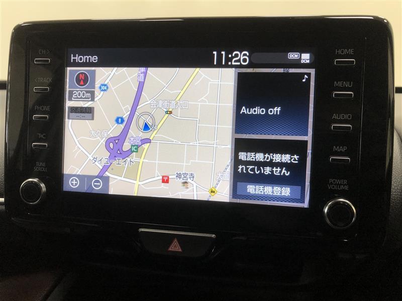 【8インチディスプレイオーディオ】各種オーディオ機能とスマホ連携機能を搭載。ナビキットを装着しているので、車載ナビとしても使用可能です。機能の詳細につきましては、店舗スタッフまでお尋ねください。