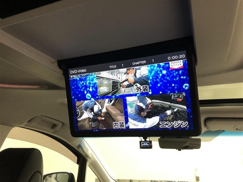 【13.3インチリヤシートエンターテインメントシステム】後席独立機能により、前席と後席で別々の音声を聞くことが可能です。ディスプレイは電動開閉式なのでリモコン操作が可能!走行中でも安全に操作できます。