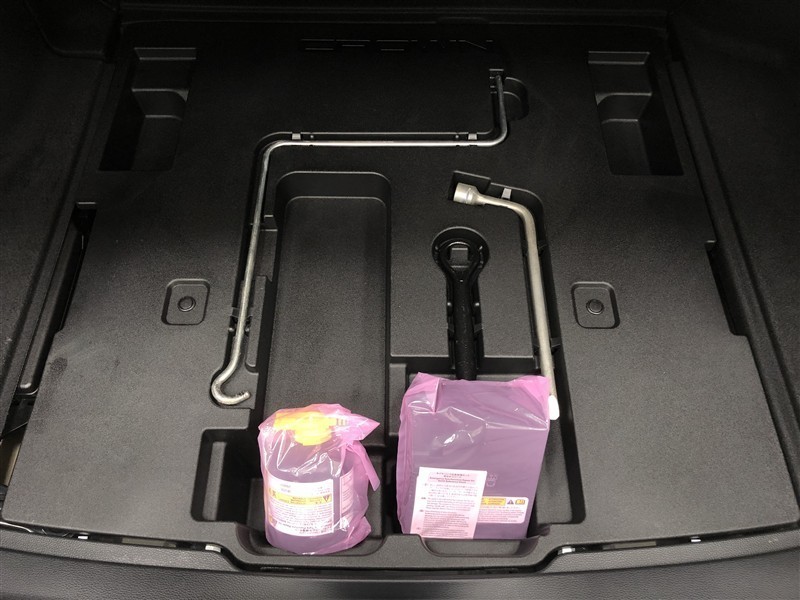 パンク修理キットです。補修材が入ったボトルとコンプレッサーがセットになっています。