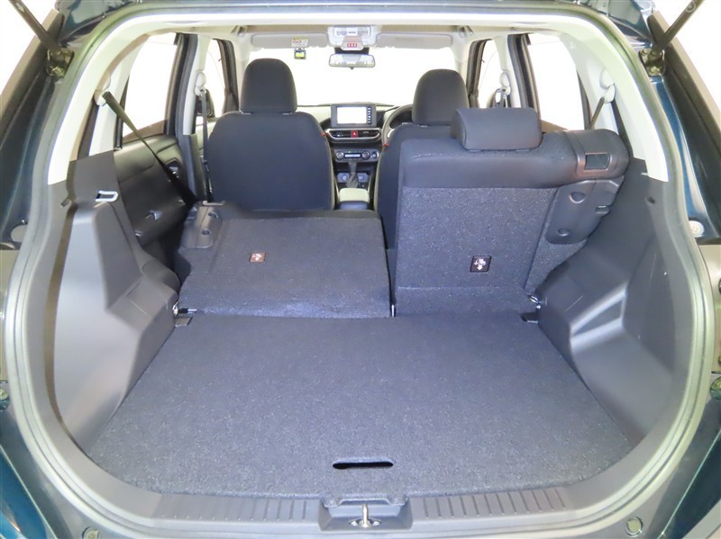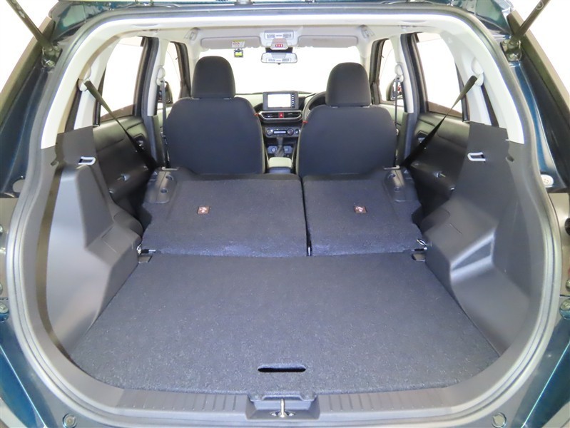 後席を倒すと、大きな荷物や長尺の荷物の積載も可能になります。ぜひ現車でご確認ください。