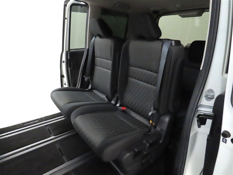 セカンドシートを倒すとフラットな空間が広がります。ぜひ現車でご確認ください。