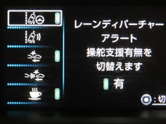 車載のカメラにより道路上の車線を検知し、車線からはみ出しそうになった場合やはみ出した場合には、警報にて運転者に注意を促すシステム。