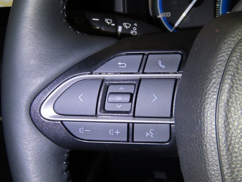 ハンドルから手を離さないでオーディオ等が操作できるステアリングスイッチがついてます。
