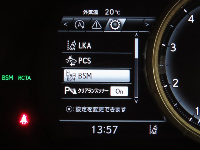 車線変更時などに、ドアミラーでは確認しにくい後側方エリア(ブラインドスポット)に存在する車両をレーダーで検知。警告サインをドアミラー等に表示することで、運転者に注意喚起する機能。
