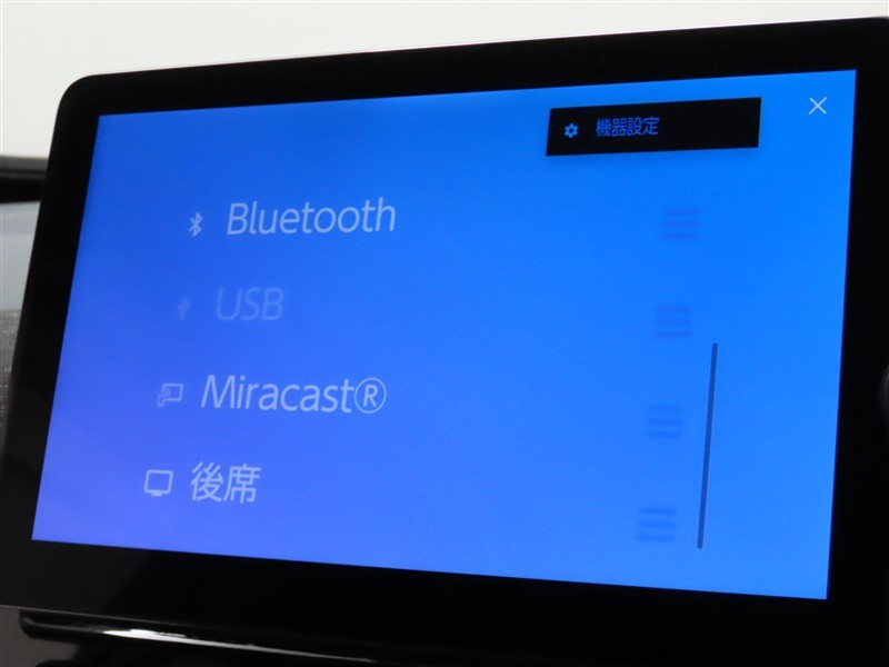 オーディオソース選択画面です。Bluetoothオーディオをご利用いただけます。
