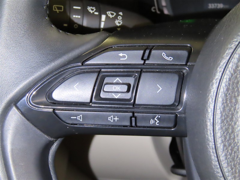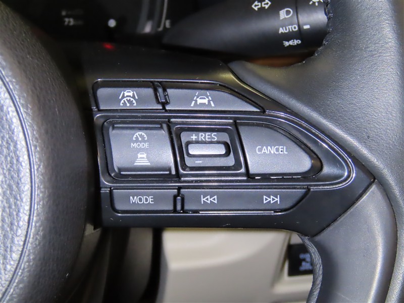 ハンドルから手を離さないでオーディオ等が操作できるステアリングスイッチが付いてます。