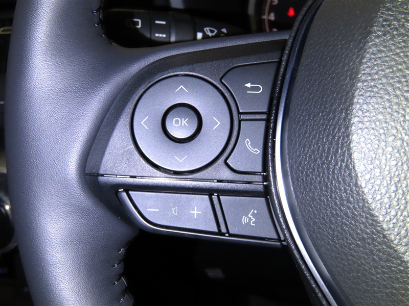ハンドルから手を離さないオーディオ等が操作できるステアリングスイッチを装備しております。