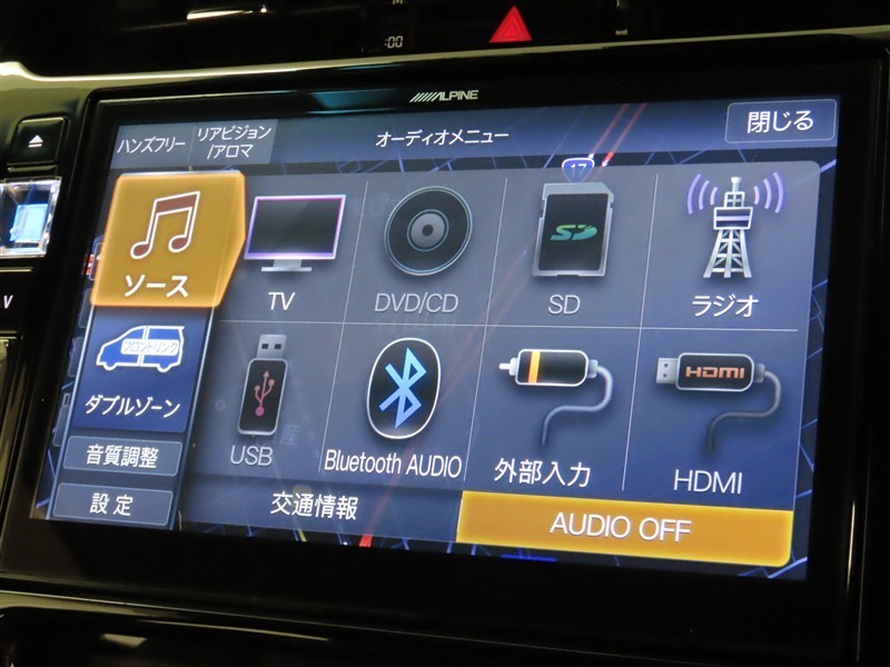オーディオソース選択画面です。Bluetoothオーディオをご利用いただけます。