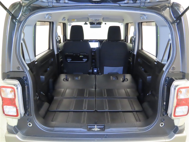後席を倒すと、長尺の荷物の積載も可能になります。