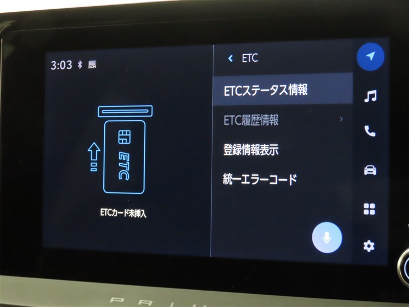 ETCの履歴などが画面で確認できます。