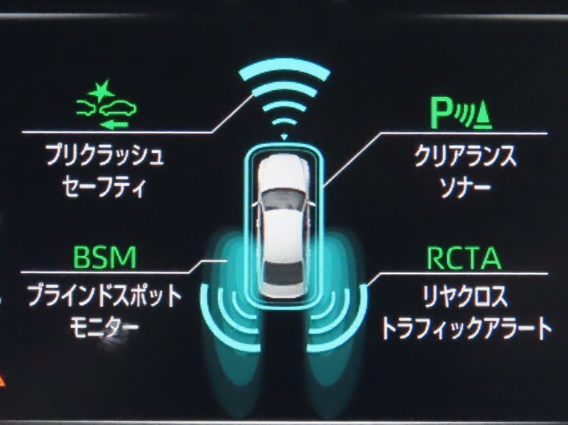 車線変更時などに、ドアミラーでは確認しにくい後側方エリア(ブラインドスポット)に存在する車両をレーダーで検知。警告サインをドアミラー等に表示することで、運転者に注意喚起する機能。