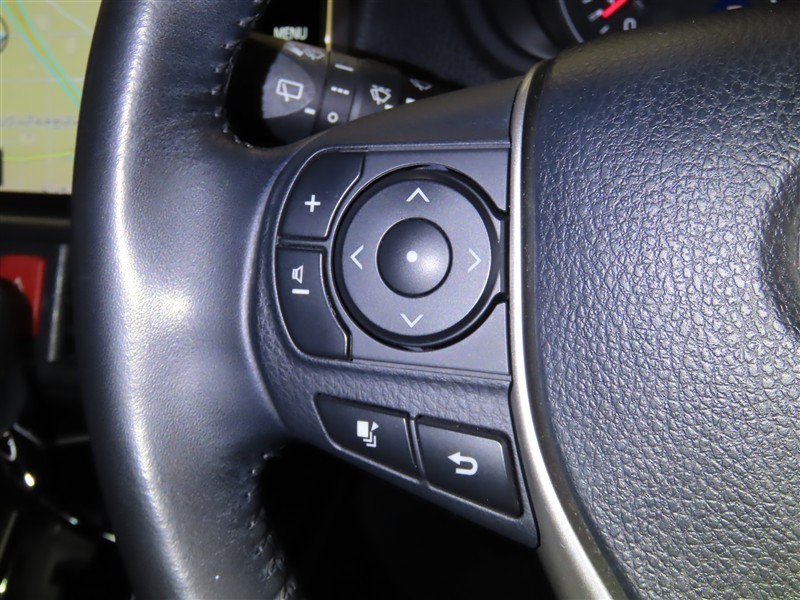 ハンドルから手を離さないでオーディオ等が操作できるステアリングスイッチがついてます。