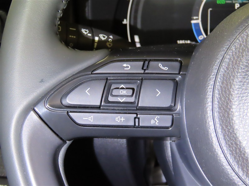 ハンドルから手を離さないでオーディオ等が操作できるステアリングスイッチが付いてます。