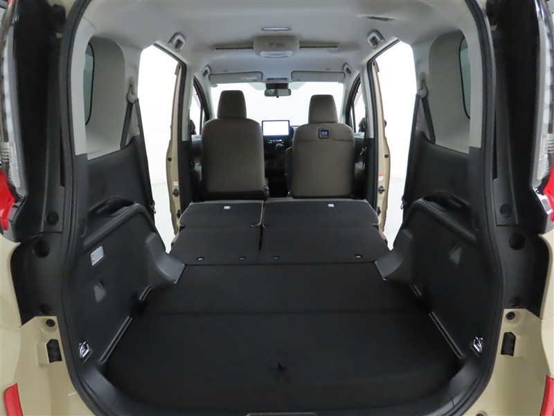 後席を倒すことでフラットな空間が広がります。ぜひ現車にてご確認ください。