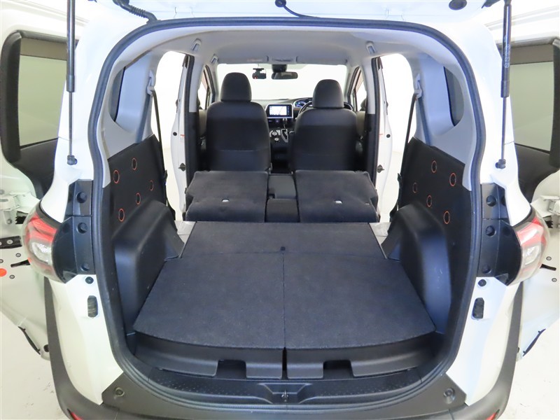 後席を倒すとフラットな空間がひろがり、長尺の荷物の積載も可能になります。