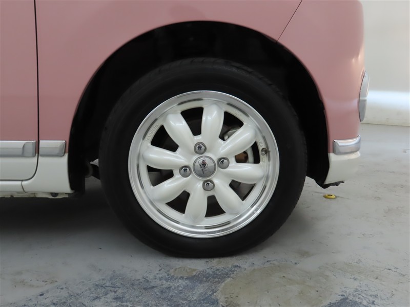 装着タイヤサイズは、155/65R14です。アルミホイールを装着しております。