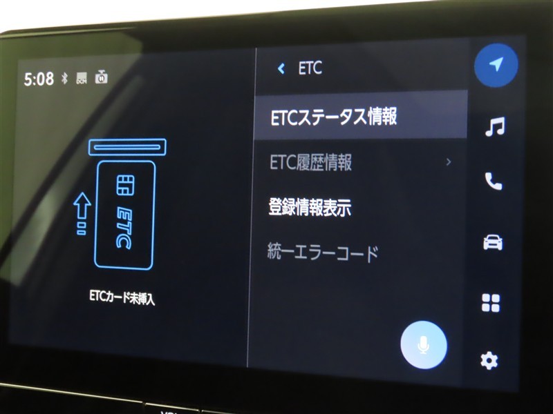 ETCの履歴などが画面で確認できます。