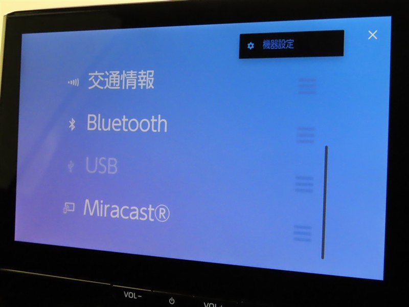 オーディオソース選択画面です。Bluetoothオーディオをご利用いただけます。