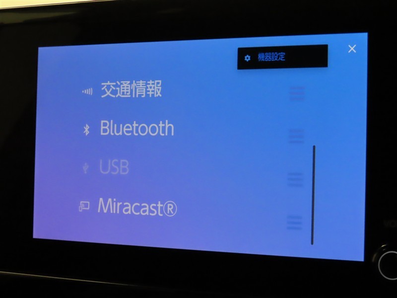 オーディオソース選択画面です。Bluetoothオーディオをご利用いただけます。
