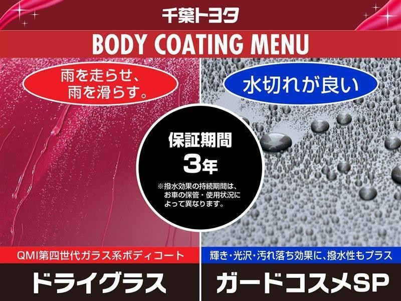 フッ素化合物を使用しており、汚れもつきにくく、お手入れ(洗車)がラクになる中古車コーティングはいかがですか!