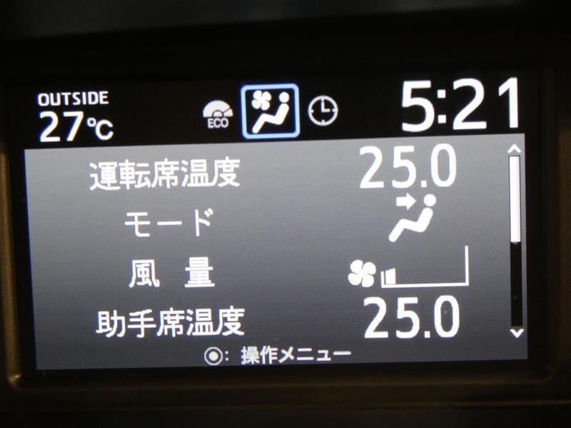 左右独立温度コントロールフルオートエアコンです。運転席、助手席それぞれで独立して温度設定ができます。冷え性の方が乗っても安心ですね♪