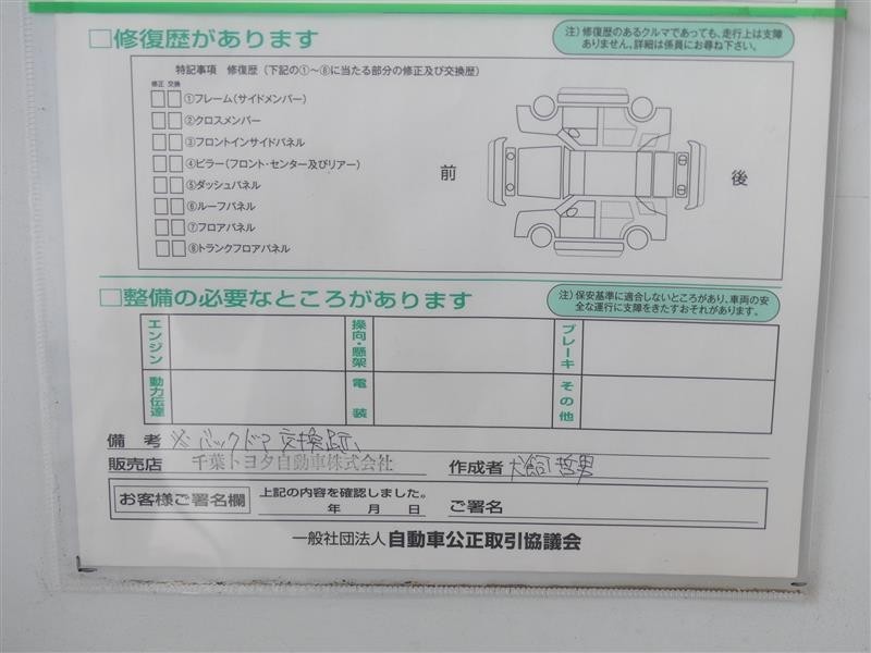 ※ 「修復歴あり」の場合、修復部位の詳細につきましては、販売店へお問い合わせください。