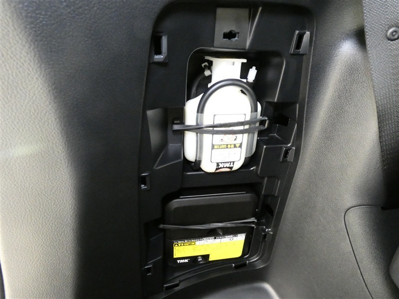 最近はパンク修理キットが標準ですね。タイヤの無い分軽量化と収納スペース確保できますね。