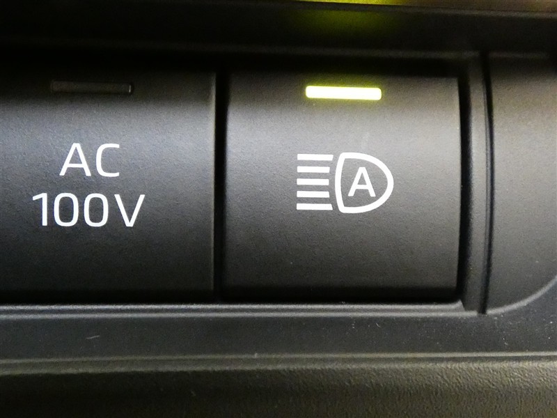 「オートHiビーム」のスイッチです。夜間走行時歩行者を発見しやすいHiビームが基本ですので、対向車や前方の車両を検知して自動で切替をしてくれます。