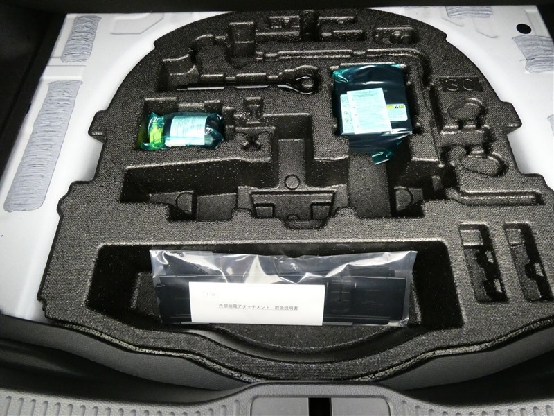 最近はパンク修理キットが標準ですね。タイヤの無い分軽量化と収納スペース確保できますね。