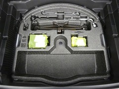 パンク修理剤とエアーポンプのセットです。スペアタイヤは装備していませんが空いたスペースを小物入れとして使用できます