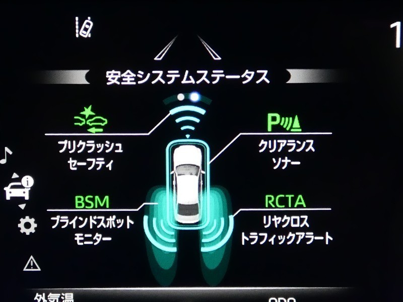 車線変更時などに、ドアミラーでは確認しにくい後側方エリア(ブラインドスポット)に存在する車両をレーダーで検知。警告サインをドアミラー等に表示することで、運転者に注意喚起する機能。