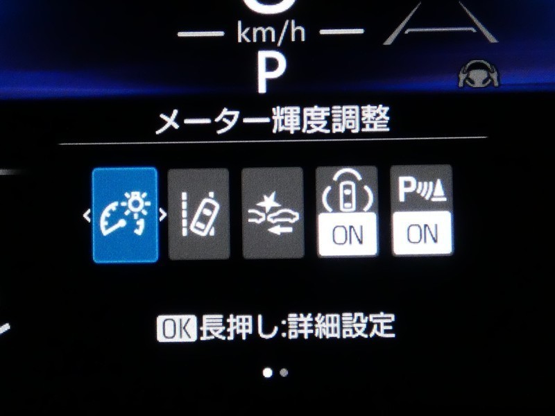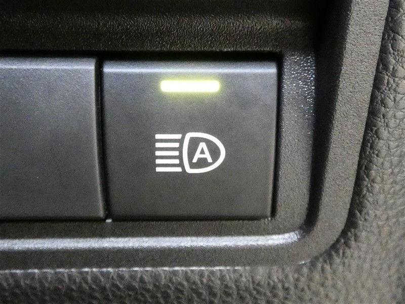 「オートHiビーム」のスイッチです。夜間走行時歩行者を発見しやすいHiビームが基本ですので、対向車や前方の車両を検知して自動で切替をしてくれます。