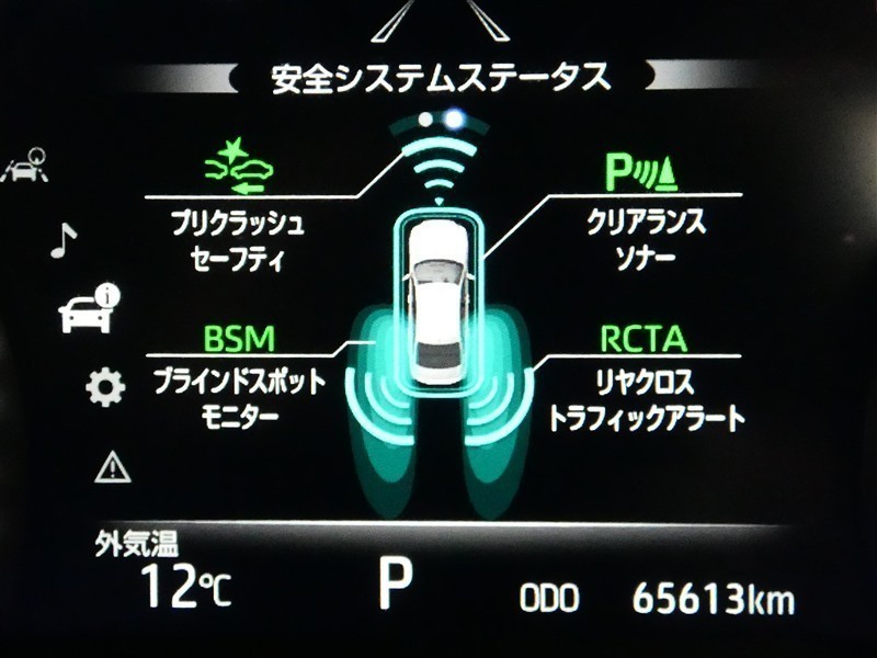 車線変更時などに、ドアミラーでは確認しにくい後側方エリア(ブラインドスポット)に存在する車両をレーダーで検知。警告サインをドアミラー等に表示することで、運転者に注意喚起する機能。