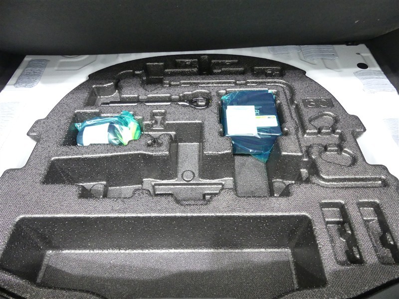 最近はパンク修理キットが標準ですね。タイヤの無い分軽量化と収納スペース確保できますね。