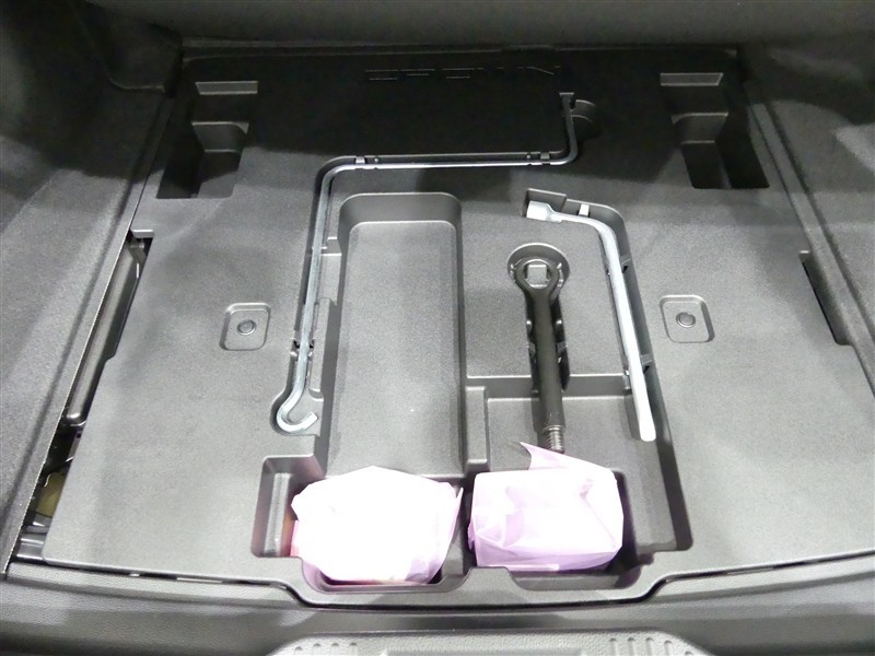 スペアタイヤレス車です。応急セットを搭載しております。