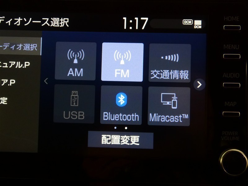 【オーディオ選択画面】AM/FMの切替や、交通情報もこちらの画面から選択できます。