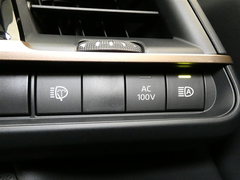 「オートHiビーム」のスイッチです。夜間走行時歩行者を発見しやすいHiビームが基本ですので、対向車や前方の車両を検知して自動で切替をしてくれます。