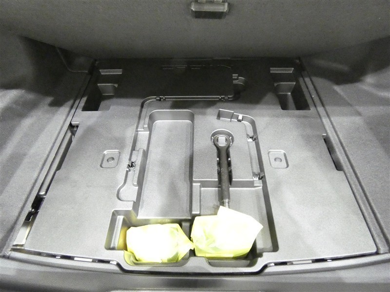 スペアタイヤレス車です。応急セットを搭載しております。