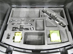 パンク修理剤とエアーポンプのセットです。スペアタイヤは装備していませんが空いたスペースを小物入れとして使用できます