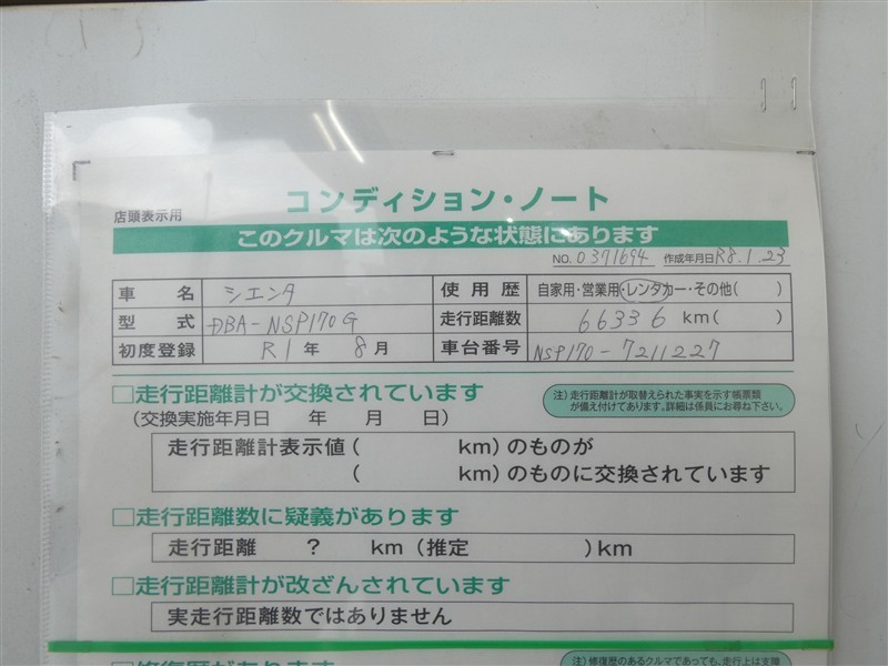 コンディションノート付き車両となっています。詳しくは、スタッフお問い合わせください。