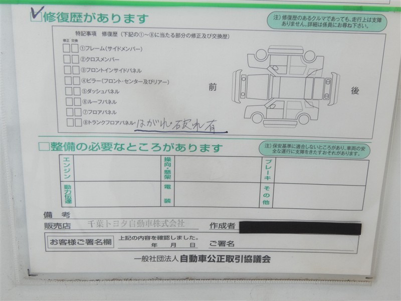 ボディ修復歴があります。詳しくは、スタッフまでお問い合わせください。