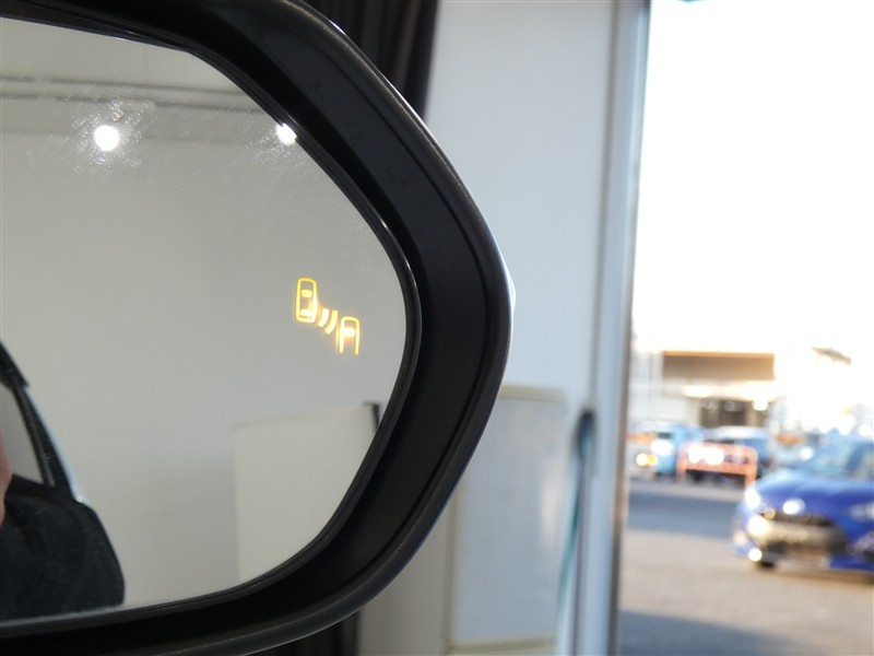 ブラインドスポットモニター装備。隣車線を走る車両を検知。ドアミラーでは確認しにくい後、側方エリアに存在する車両や急接近してくる車両も検知しドアミラーに搭載されたLEDインジケーターが点灯します。