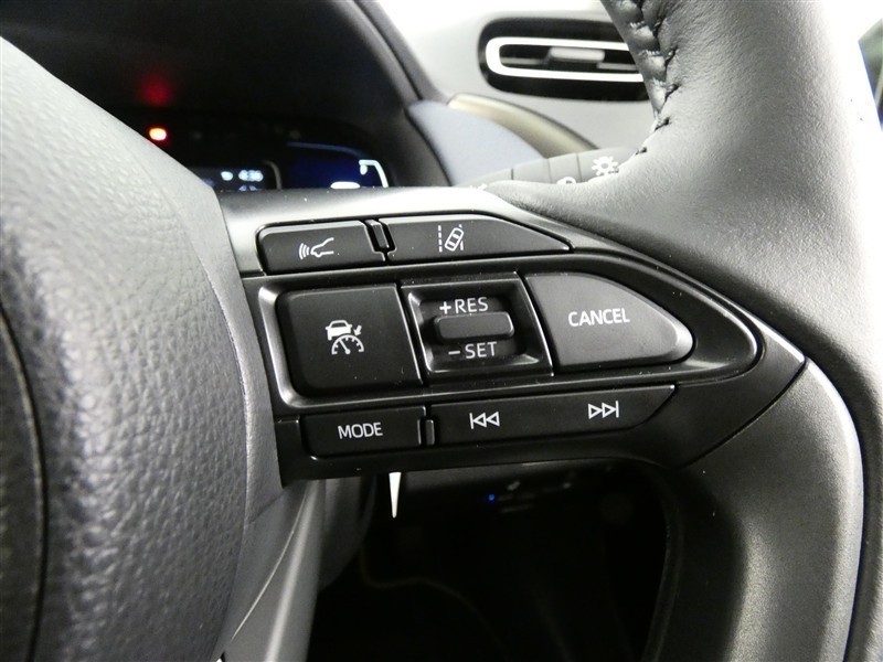 ステアリングスイッチでクルーズコントロール機能の操作ができます。長距離の高速走行時の疲労軽減や燃費に役立ちます。