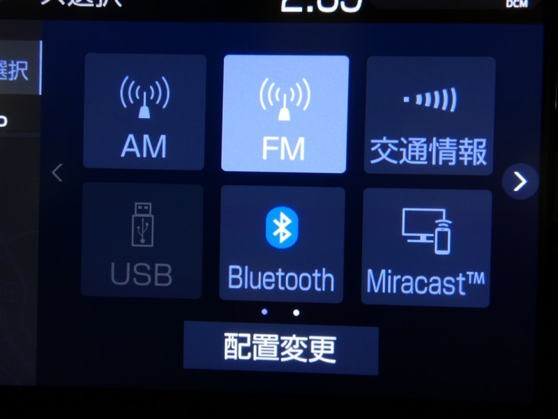 【オーディオ選択画面】AM/FMの切替や、交通情報もこちらの画面から選択できます。