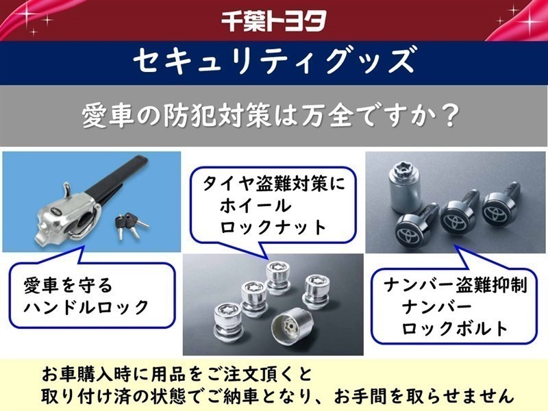愛車を守るハンドルロックやタイヤ、ナンバープレートの盗難防止にセキュリティグッズの取り付けをお勧めします。