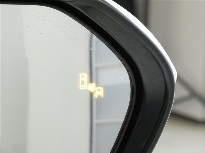 ブラインドスポットモニター装備。隣車線を走る車両を検知。ドアミラーでは確認しにくい後、側方エリアに存在する車両や急接近してくる車両も検知しドアミラーに搭載されたLEDインジケーターが点灯します。